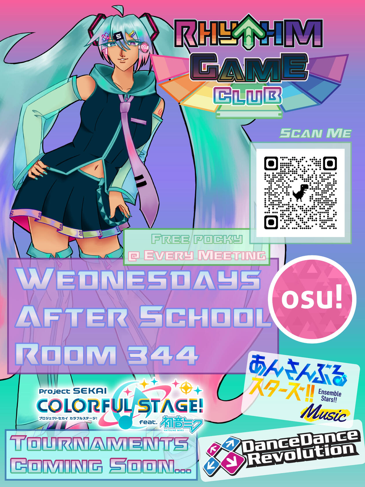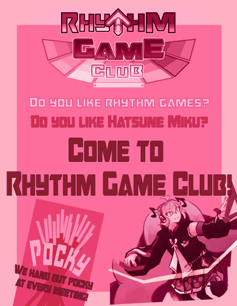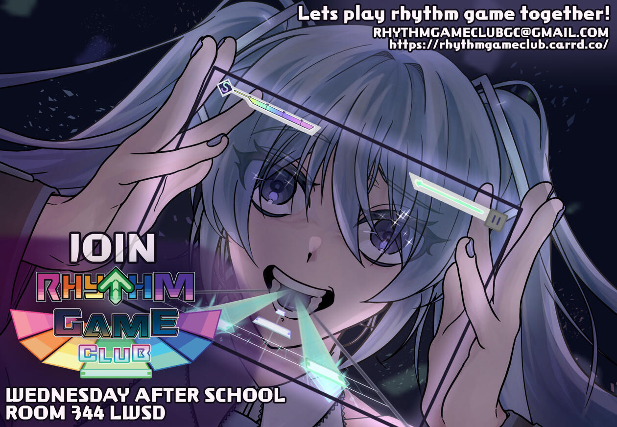Rhythm Game Club is a club at Lake Washington High School that focuses on all things rhythm games! From Project Sekai, to Dance Dance Revolution, to Guitar Hero, to osu!; you name it, we play it. We also really like Vocaloid (because who doesn't?) a lot. We hope you enjoy our club as much as we do :)We meet in room 344 on Wednesdays, after school (1:00PM).